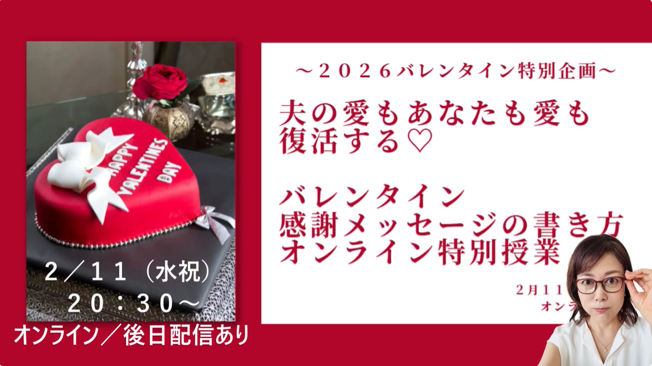 【締切ました!】夫の愛もあなたの愛も復活する♡「バレンタイン感謝メッセージの書き方」オンライン特別授業