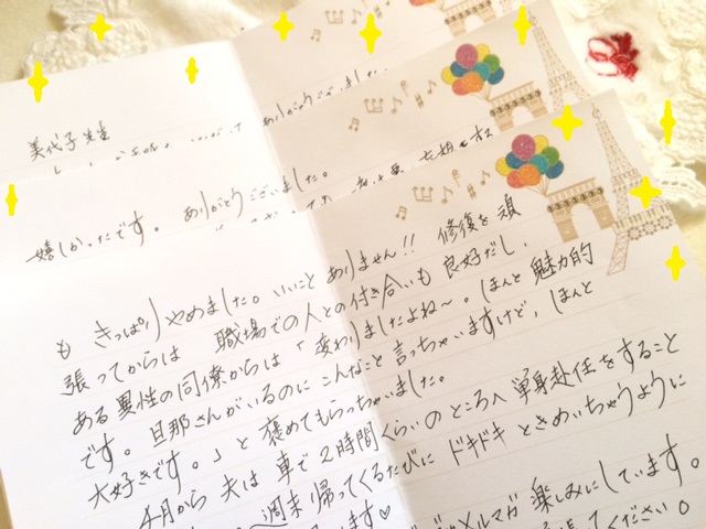 6月にメール相談でお世話になった、○○です。美代子さーん!とーっても嬉しいことがあったので、報告させてください!
